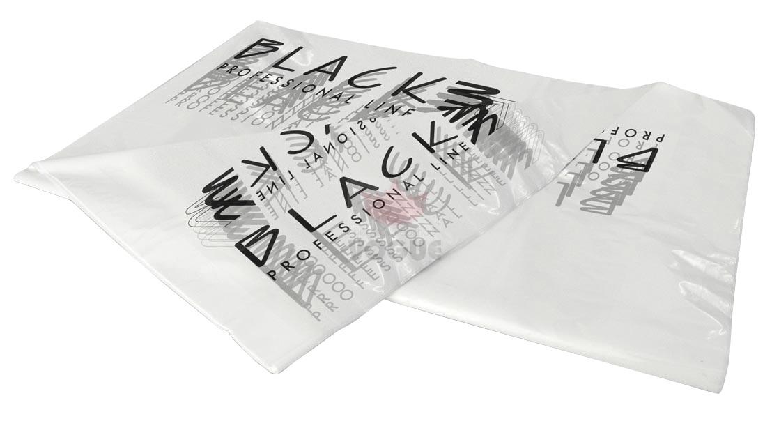 Pláštenky sú mliečno priehľadné s čiernou potlačou Black.