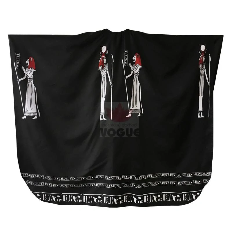 Zvýraznite štýl a profesionalitu svojho salónu pomocou jedinečnej kaderníckej pláštenky s motívom Egypta. Táto čierna pláštenka nie je len praktickým, ale aj vizuálne zaujímavým doplnkom, ktorý zaujme každého klienta.