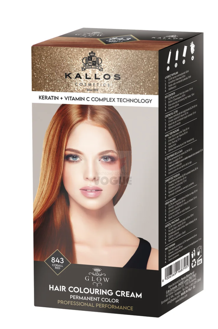 Kallos Glow farba na vlasy korálová červená 843skladom 2 ks2,90 €/ ks2,36 € bez DPH