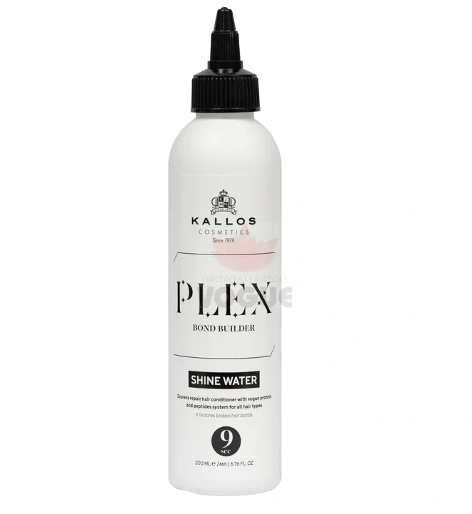 Kallos PLEX Shine Water, expresný kondicionér, lamelárna voda, chemicky ošetrené vlasy, poškodené vlasy, lámavé vlasy, regenerácia vlasov, ochrana vlasov, lesk vlasov, hladkosť vlasov, rýchla regenerácia vlasov, rastlinné bielkoviny a peptidy, ochranný povlak na vlasy, zníženie poletovania vlasov, kondicionér na vlasy, starostlivosť o vlasy, veľké balenie kondicionéra na vlasy.