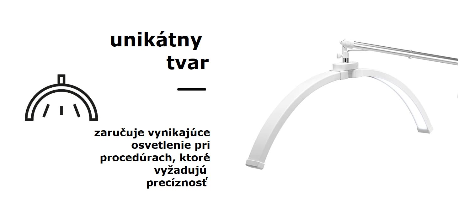 Charakteristický tvar hlavy lampy nie je len moderným dizajnom, ale predovšetkým funkčným riešením. Široký, klenutý panel, rozdelený na dve časti naplnené 308 LED diódami, poskytuje rovnomerné, beztieňové osvetlenie ošetrovanej oblasti, čím zvyšuje pohodlie pri práci. Je tiež ideálny na fotografovanie účinkov ošetrení a ich presné exponovanie. Povrch panelu efektívne rozptyľuje svetlo, čím minimalizuje efekt oslnenia. Vďaka možnosti nastavenia farby a intenzity svetla lampa poskytuje vynikajúcu reprodukciu viditeľných farieb a minimalizuje únavu očí, a to aj pri dlhodobom používaní. Otočná hlava a rám so širokým rozsahom nastavenia navyše umožňujú presné nastavenie uhla dopadu svetla. Navyše, oba panely je možné nastaviť nezávisle v rozsahu 90 stupňov, čo poskytuje ešte väčšiu slobodu pri prispôsobovaní osvetlenia individuálnym potrebám.