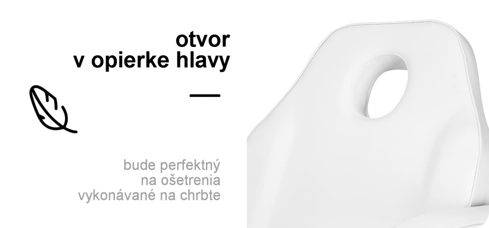 Kozmetické lehátko s otvorom v opierke hlavy, a záslepku v opierke hlavy - vhodné pre masáži chrbta. Je ako stvorené na kozmetiku, masáže, maderoterapiu a pod.