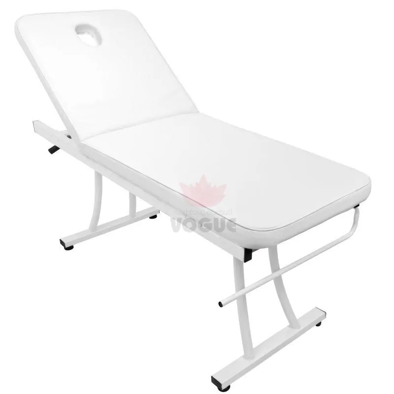- Ľahko čistiteľné čalúnenie: Lehátko je čalúnené bielym PVC materiálom, ktorý je odolný a jednoducho sa čistí. To zabezpečuje vysokú úroveň hygieny a dlhú životnosť produktu, čo je kľúčové pre každodenné používanie.