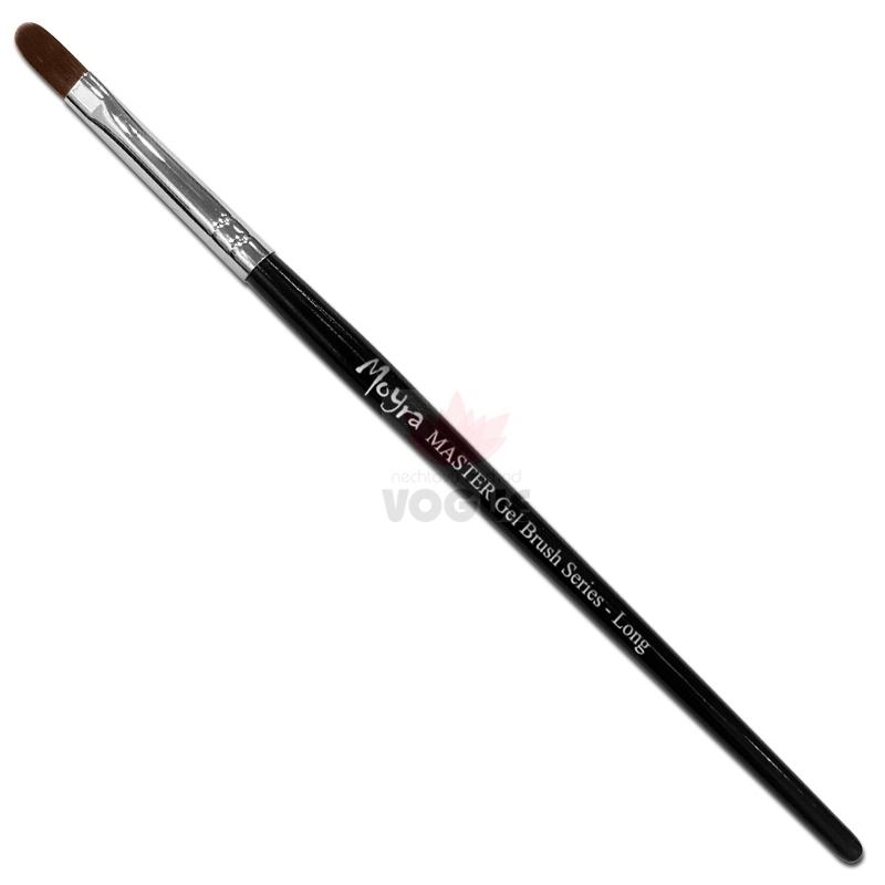 Moyra Master Gel Brush Series štetec - Long je profesionálny štetec z kvalitného prírodného vlasu, určený na modelovanie s gélom aj akrylgélom. Má dlhé, rovné štetinky so zaoblenou špičkou, vďaka čomu zvládne prácu s väčším množstvom materiálu a zároveň umožní presné dotiahnutie pri okrajoch.