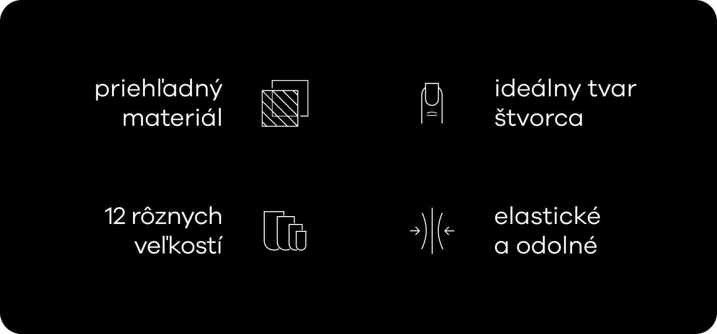 Priehľadné horné (duálne) formy hranaté predstavujú moderný spôsob predlžovania nechtov, ktorý nahrádza klasické papierové šablóny. Umožňujú rýchlo vytvoriť symetrický hranatý tvar, šetria čas pri práci a zaručujú presný výsledok s minimálnou potrebou pilovania.