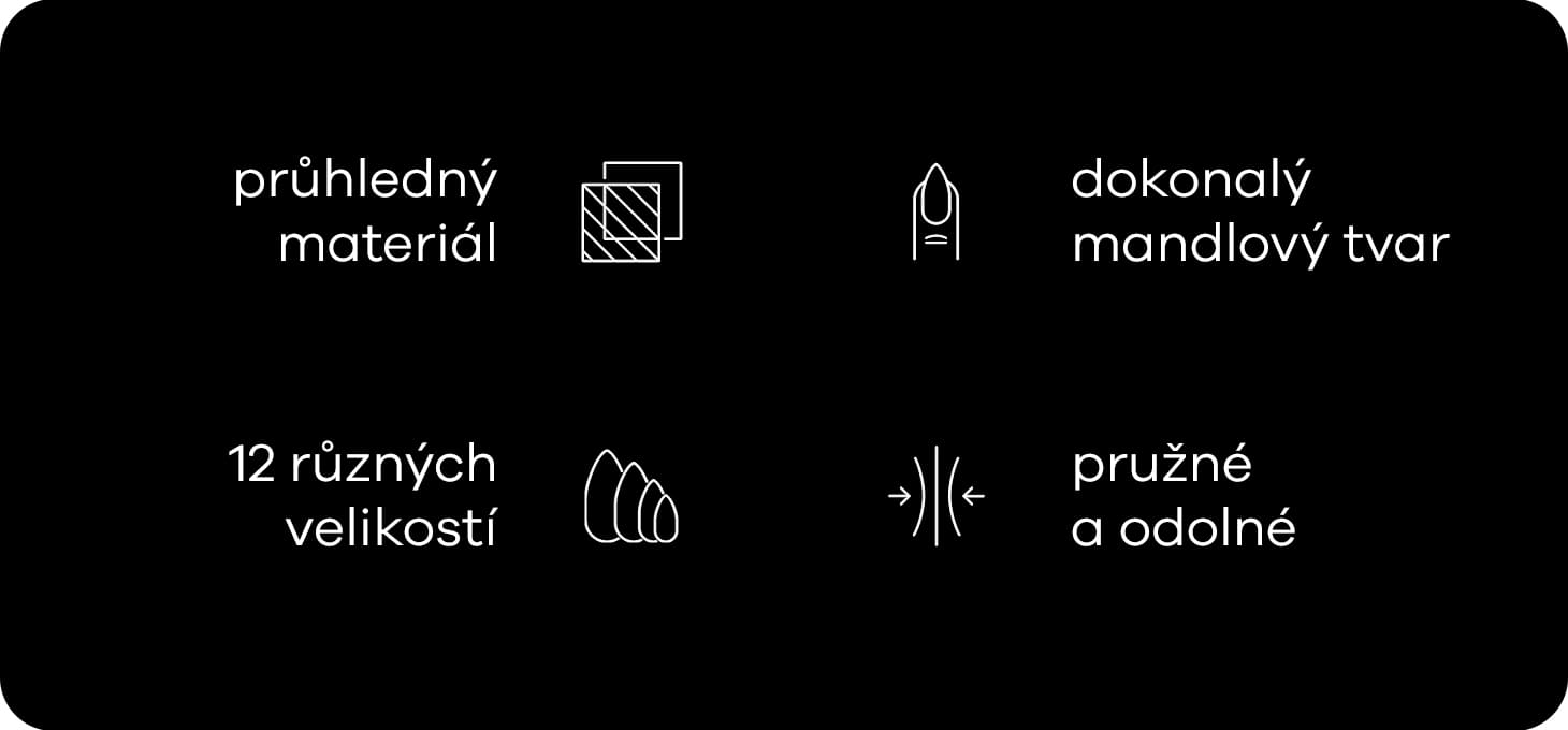 Priehľadné horné (duálne) formy Mandľa predstavujú moderný spôsob predlžovania nechtov, ktorý nahrádza klasické papierové šablóny. Umožňujú rýchlo vytvoriť symetrický mandľa tvar, šetria čas pri práci a zaručujú presný výsledok s minimálnou potrebou pilovania.