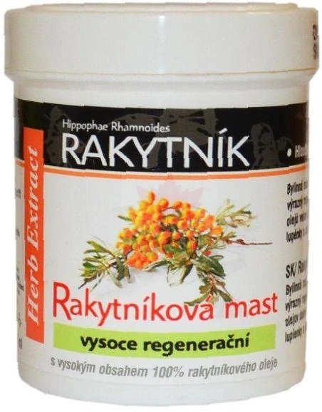 Bylinná masť s vysokým obsahom 100% rakytníkového oleja. Rakytník má výrazný regeneračný, protizápalový a epitalizačný účinok, ktorý sa využíva pri spáleninách, omrzlinách, na zle hojacie sa rany alebo bercové vredy. Tlmí príznaky lupienky a atopického ekzému. Masť s vysokým obsahom oleja veľmi dobre hydratuje a premasťuje pokožku. Zvyšuje vitalitu a pružnosť pokožky.