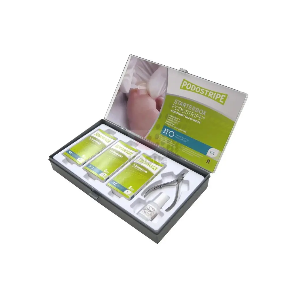 V štartovacom balíčku sú všetky výrobky a nástroje, ktoré na aplikáciu špony PODOSTRIPE budete potrebovať: