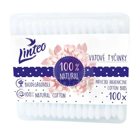 - Vatové tyčinky Linteo sú vyrobené zo 100 % bavlny a 100 % recyklovaného papiera.