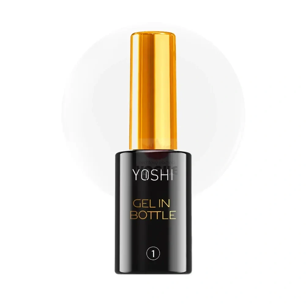 YOSHI číry gél vo fľaši s hypoalergénnym zložením pre profesionálnu modeláciu a spevnenie nechtov. Dokonalé krytie, samonivelácia a vysoký lesk bez alergických reakcií.